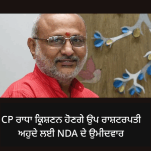 ਸੀਪੀ ਰਾਧਾਕ੍ਰਿਸ਼ਨਨ ਹੋਣਗੇ ਉਪ ਰਾਸ਼ਟਰਪਤੀ (NDA)ਉਮੀਦਵਾਰ ਦਾ ਕੀਤਾ ਐਲਾਨ